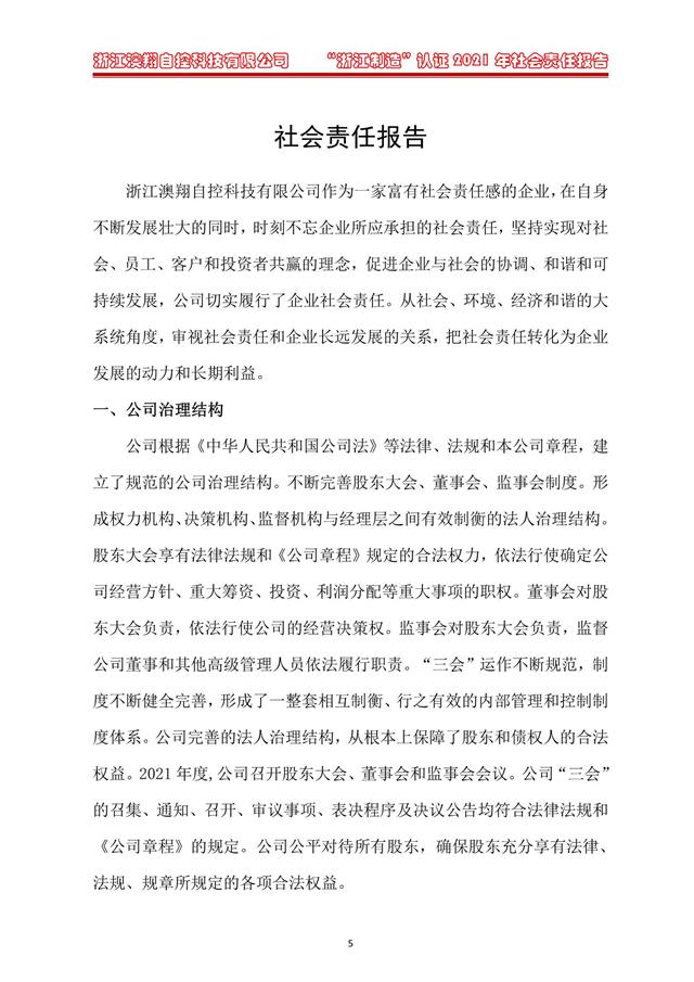 新聞中心 當(dāng)前位置: 電動閥門廠家> 新聞資訊> 新聞中心> 澳翔-2021年社會責(zé)任報告